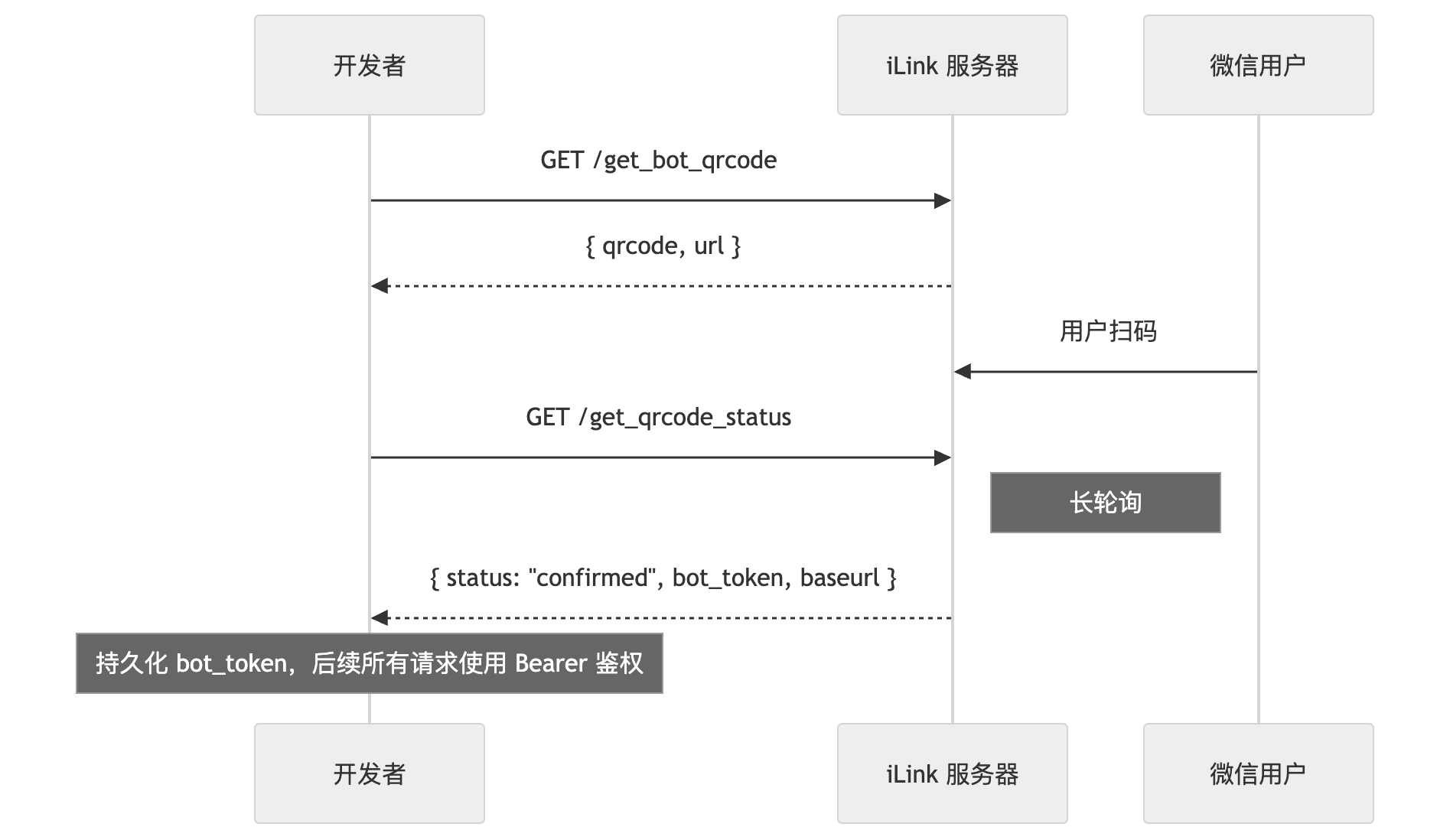 └── storage/ # 状态持久化三、iLink Bot API 协议详解